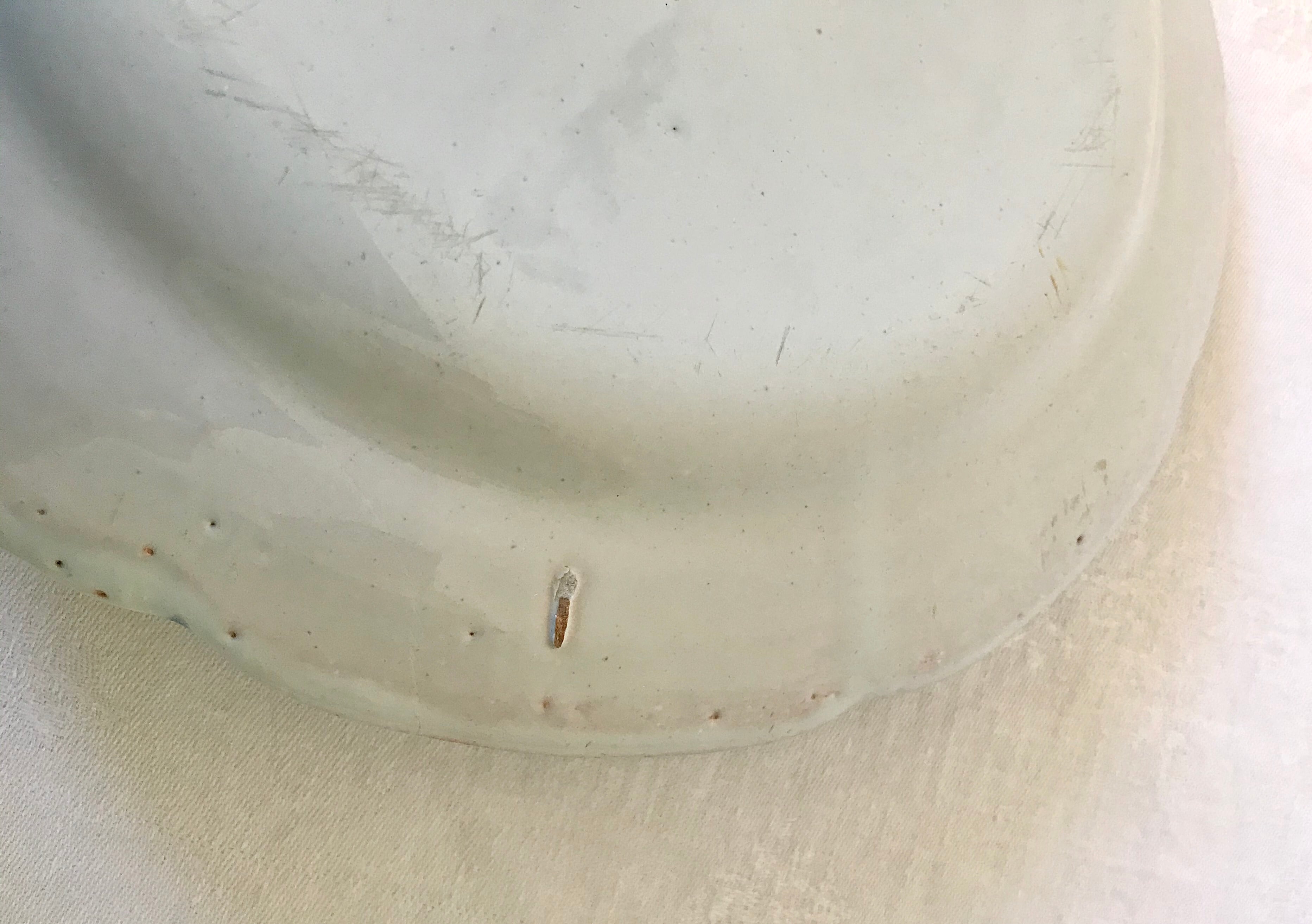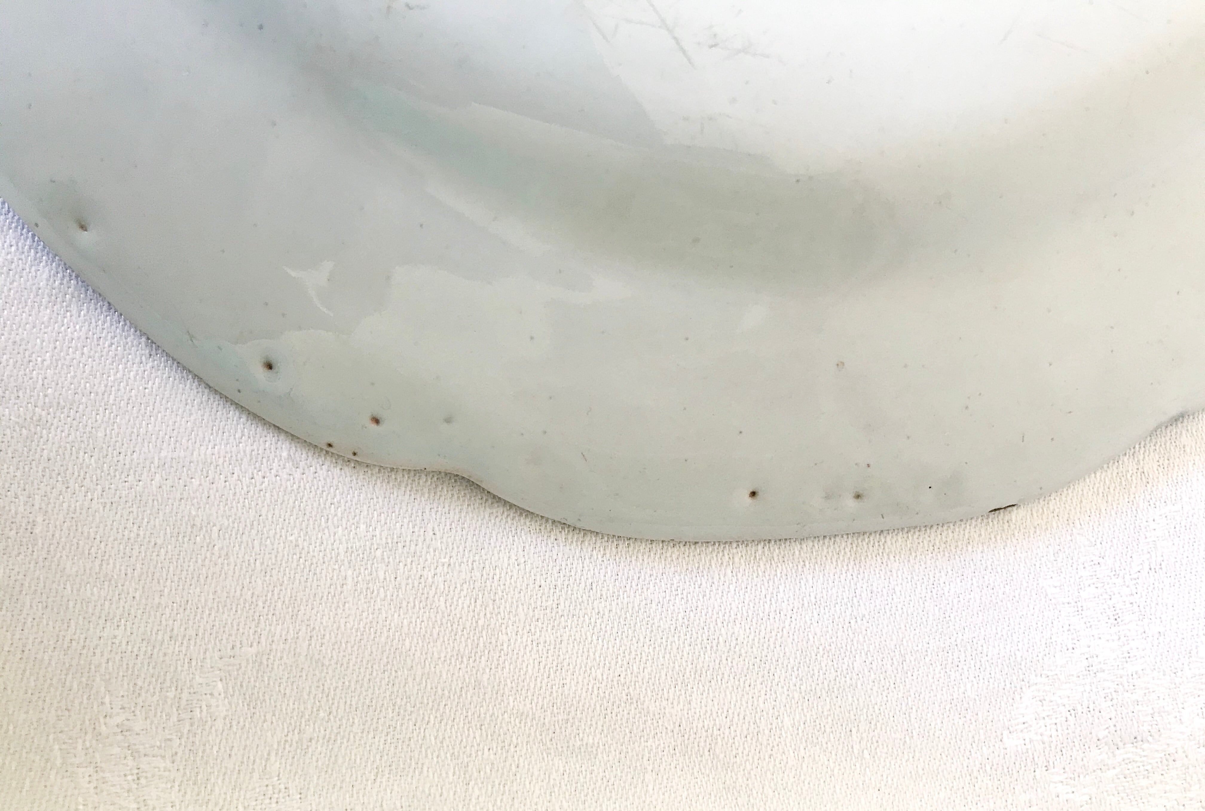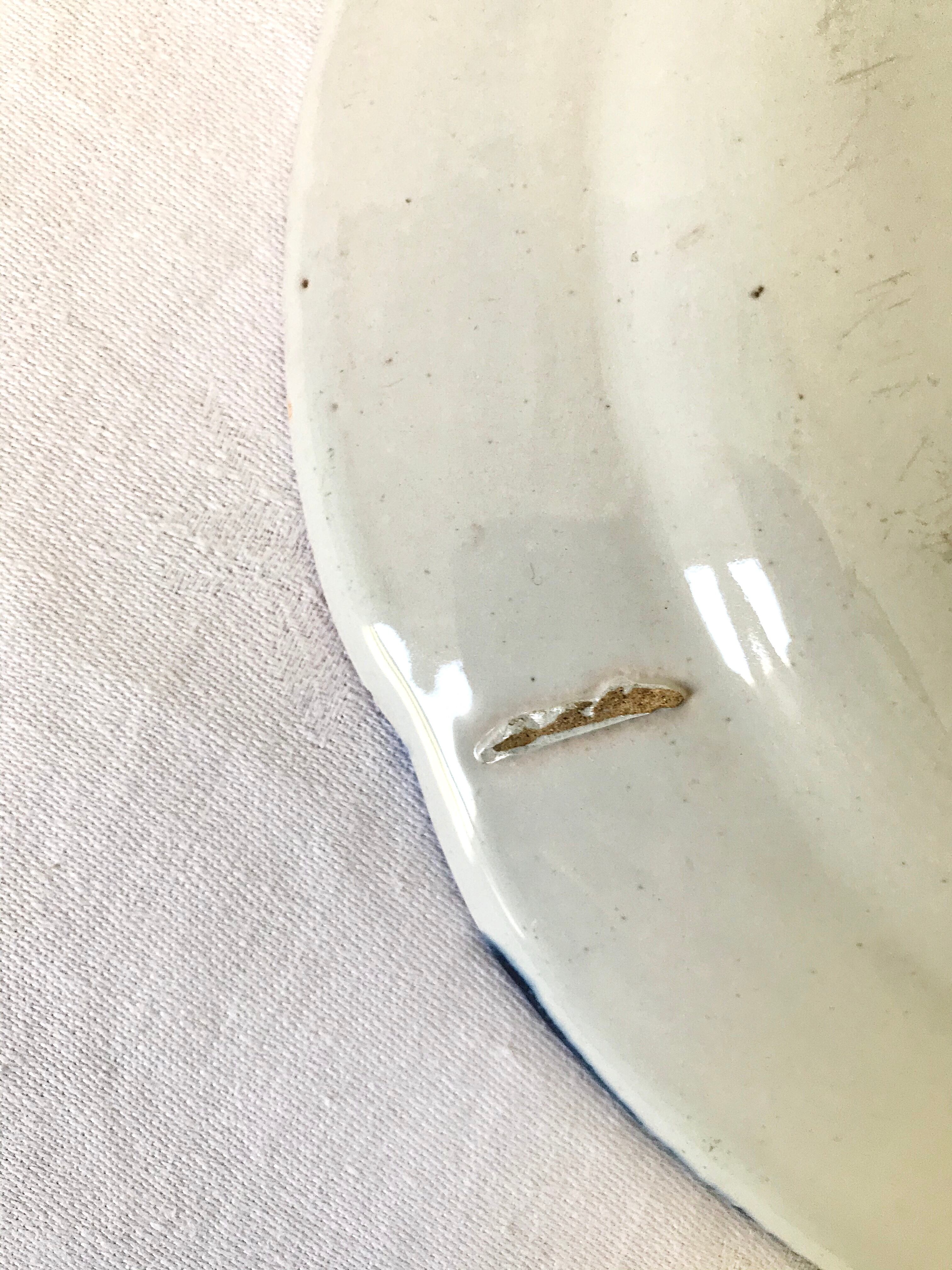 釉薬の剥がれ、主に裏面に経年による汚れが見られますが、目立ったダメージはなく、比較的良い状態です。