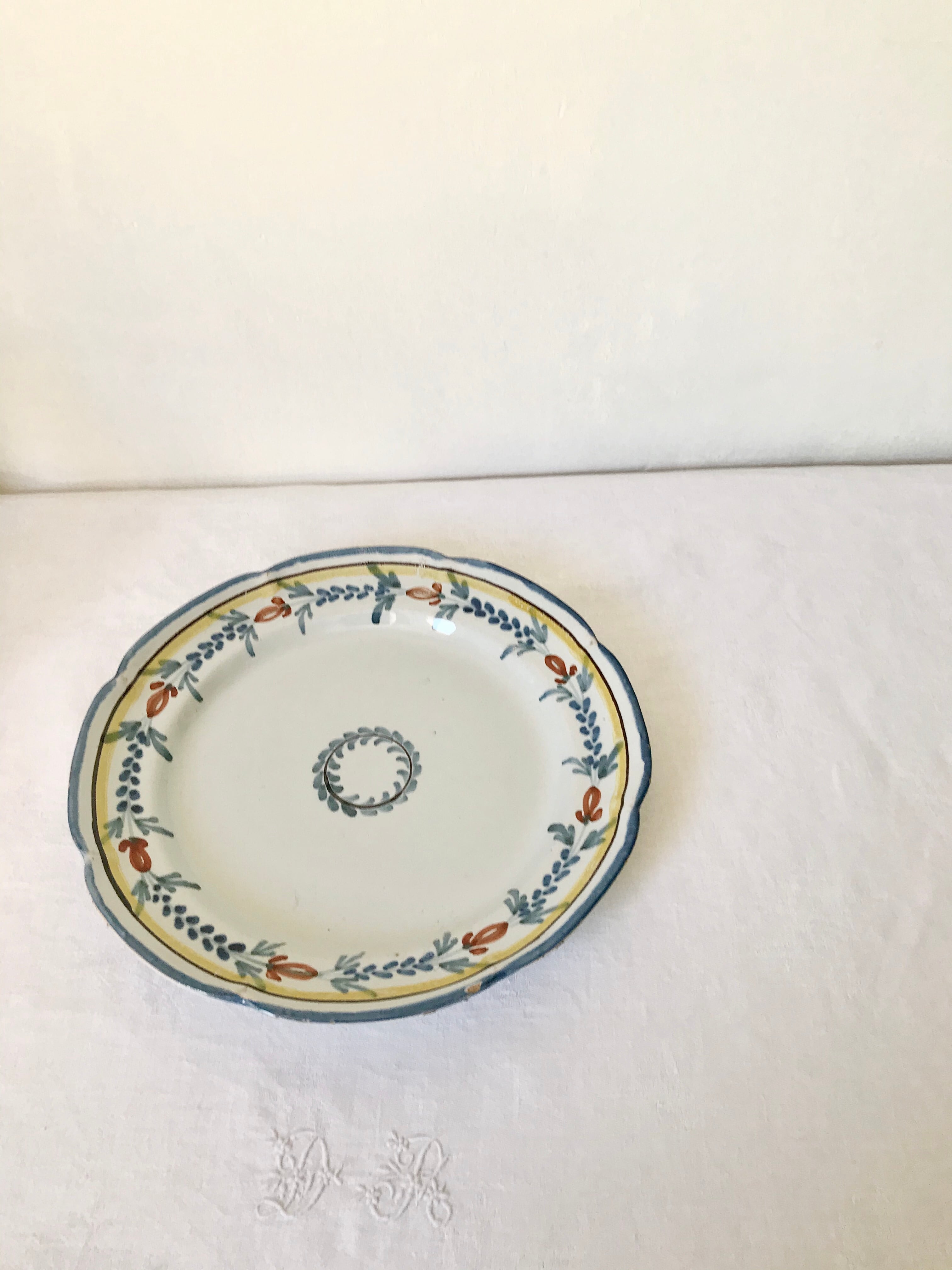 18世紀〜19世紀頃の手描きの絵つけのプレートです。