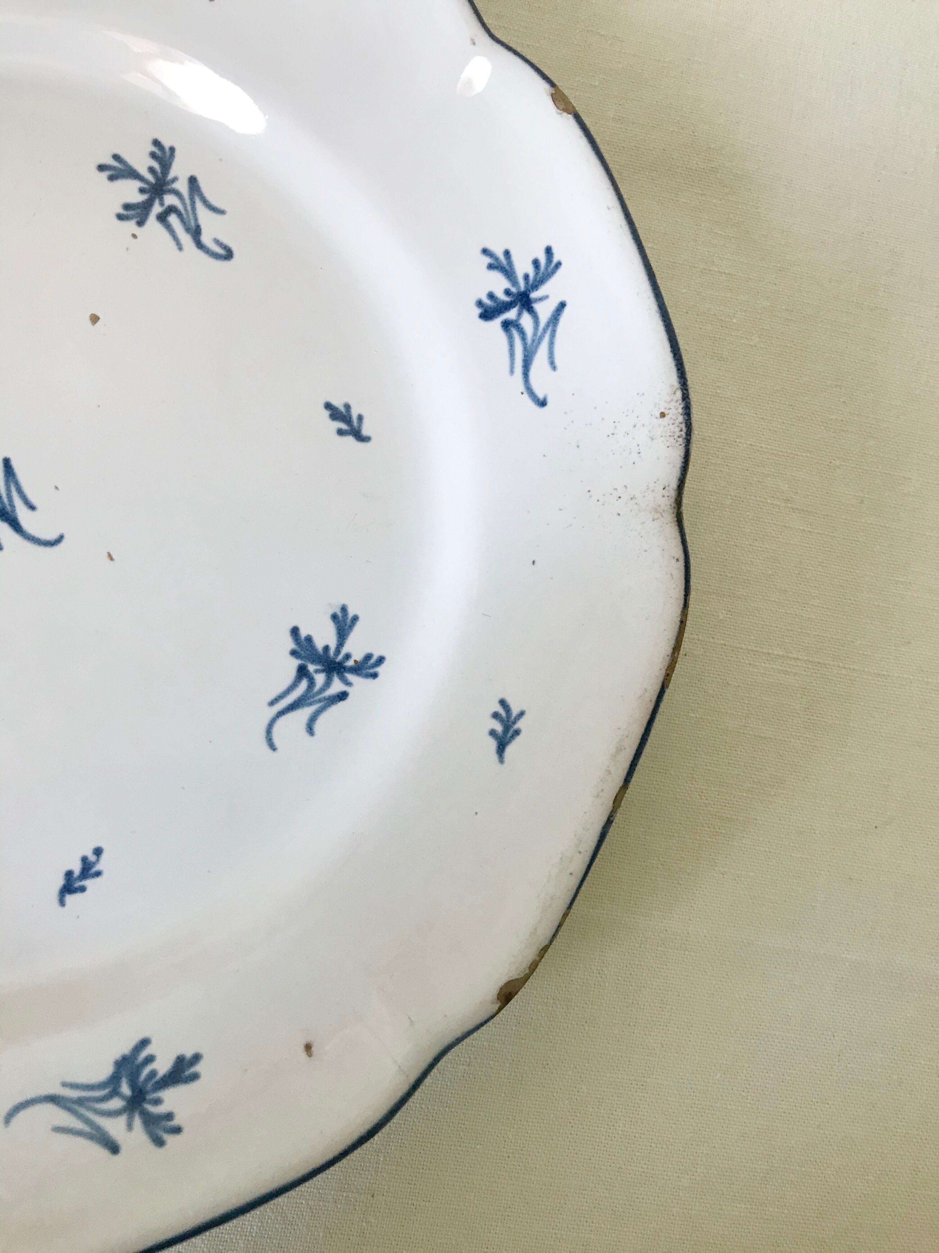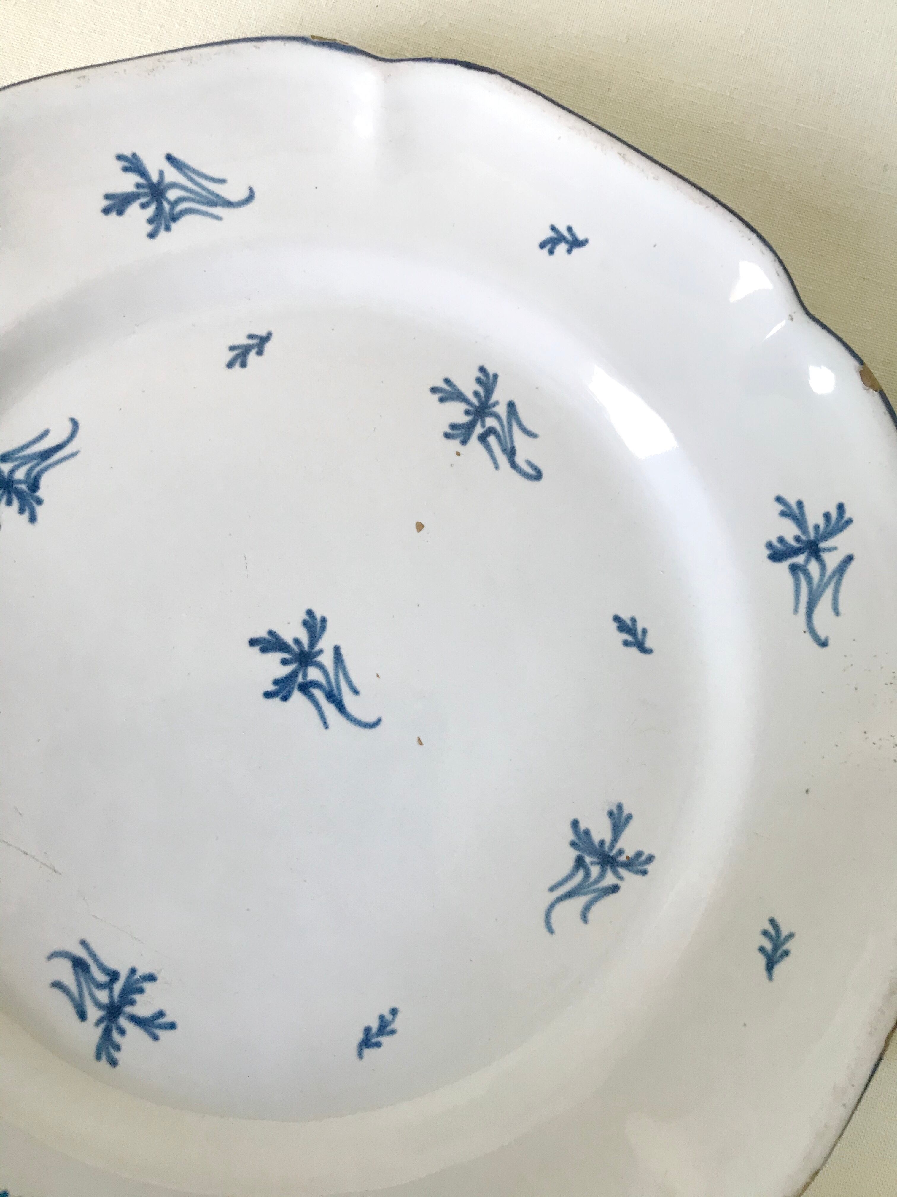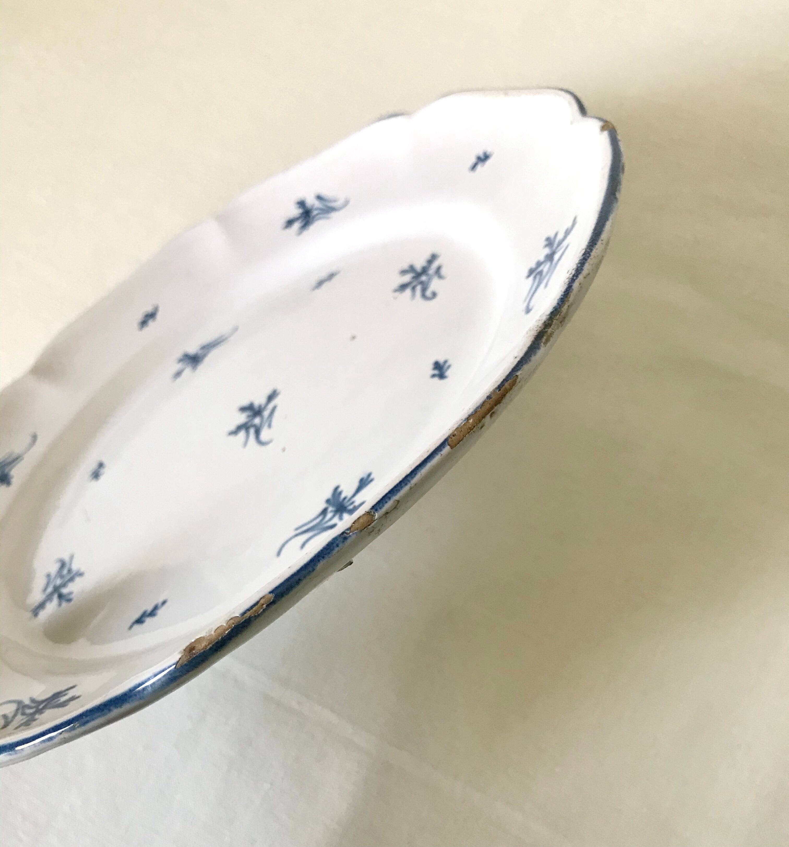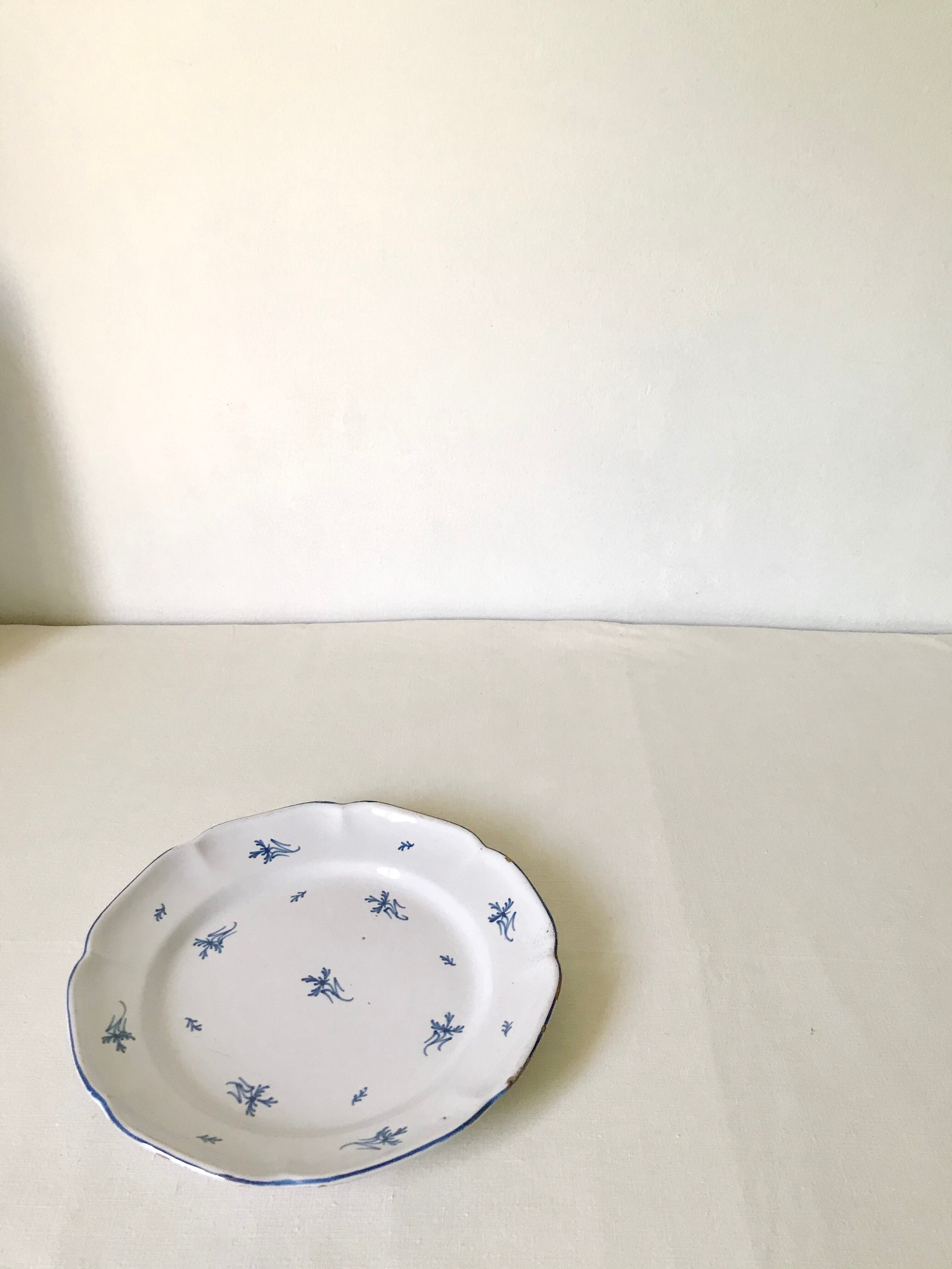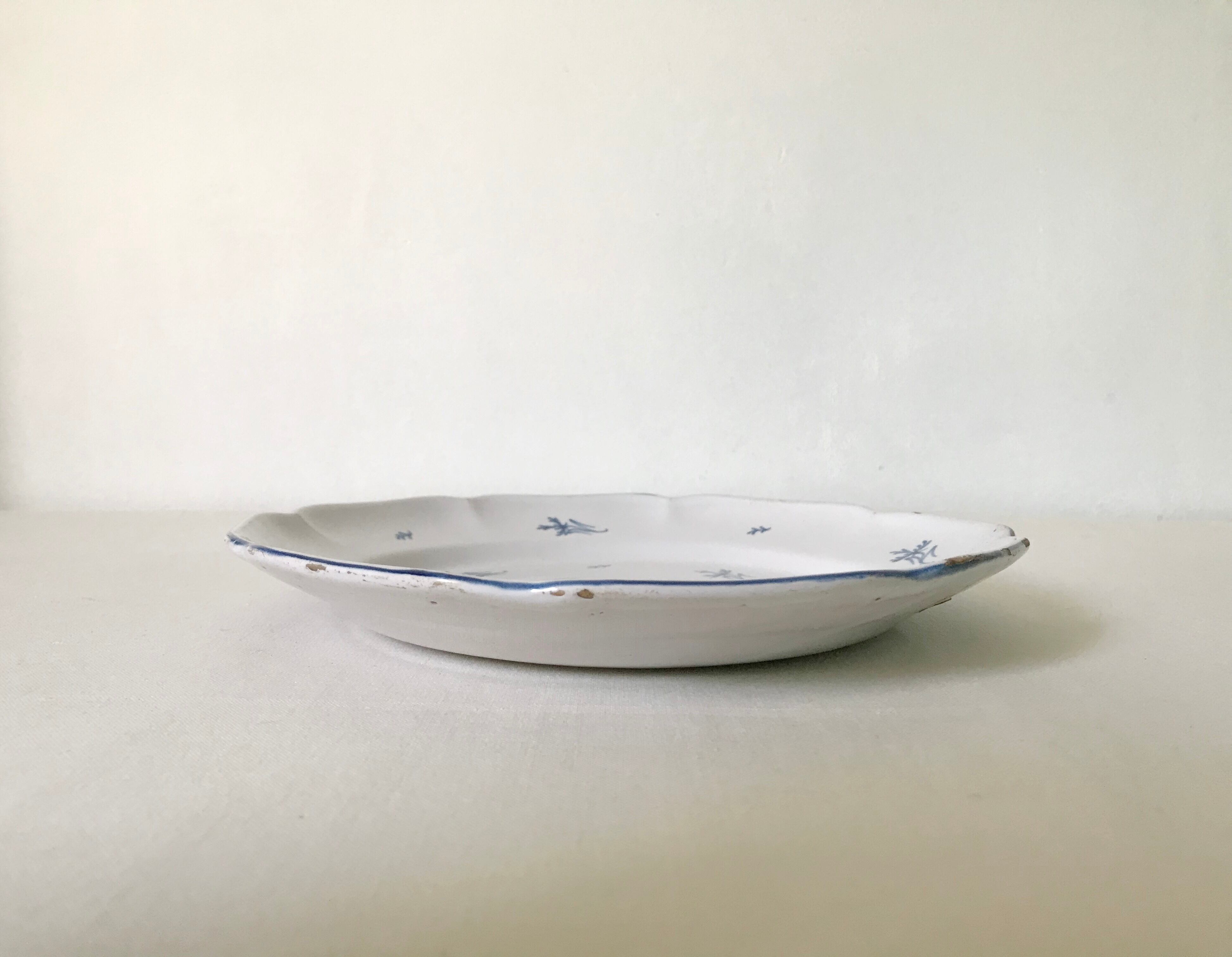 青いお花のようなモチーフが描かれたシンプルかつ、優しい佇まいのプレートです。