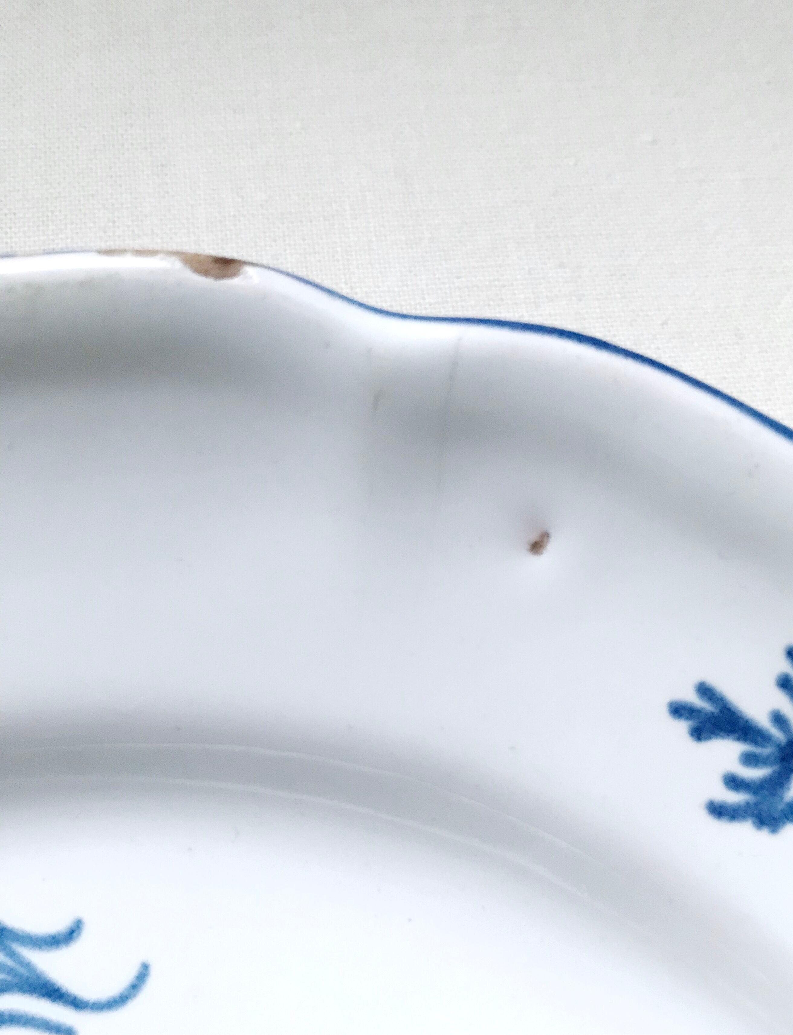 一部、縁に釉薬の剥がれ、カトラリー傷、薄くラインのように見える1cmほどの傷が1ヶ所あるものの(お写真15.16枚目参照)、状態は良い状態となっています。