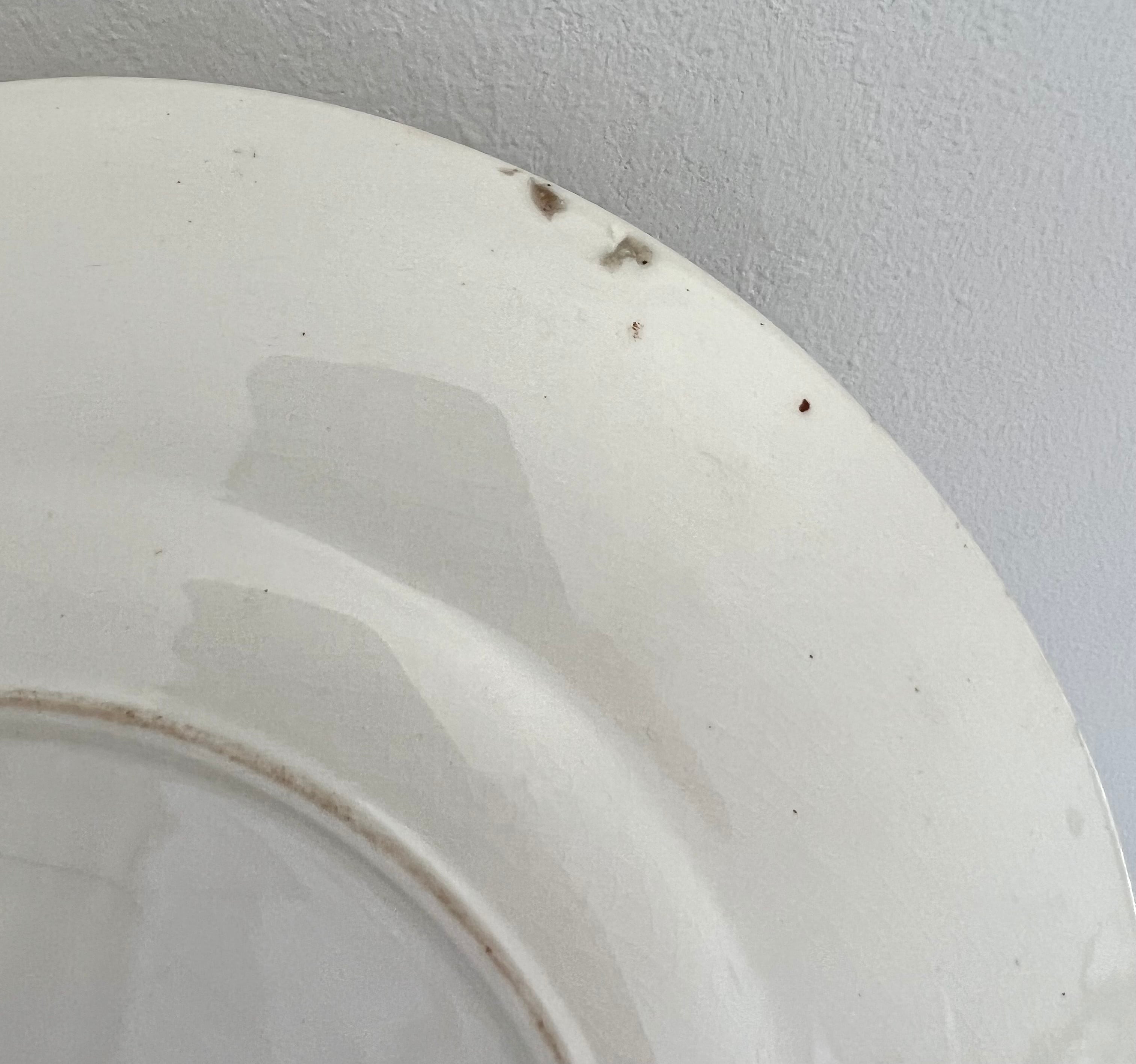 可愛らしいリボンのモチーフと見込みまで描かれた可憐なお花のブーケが素敵なオレンジブラウンのプレートです。