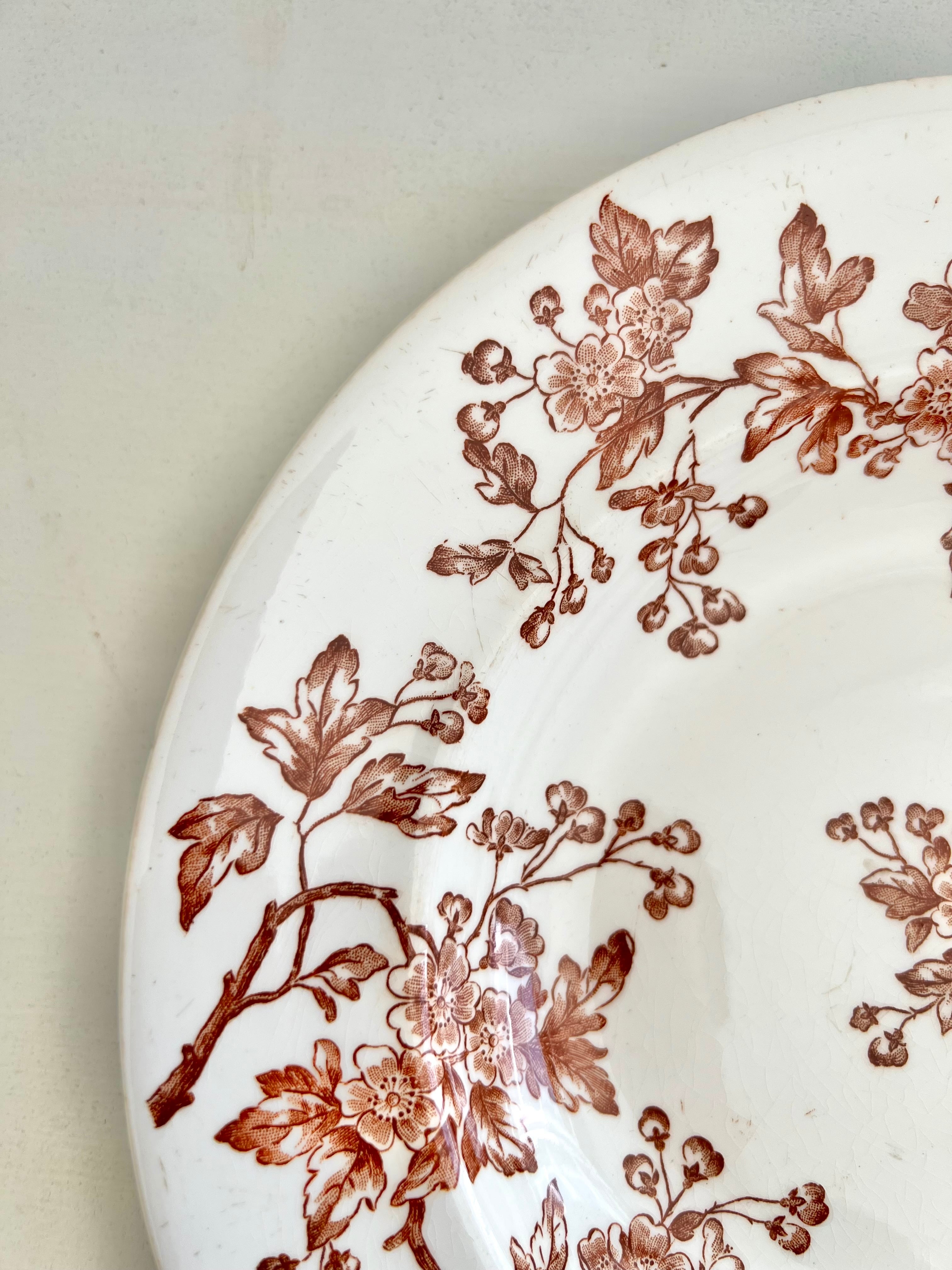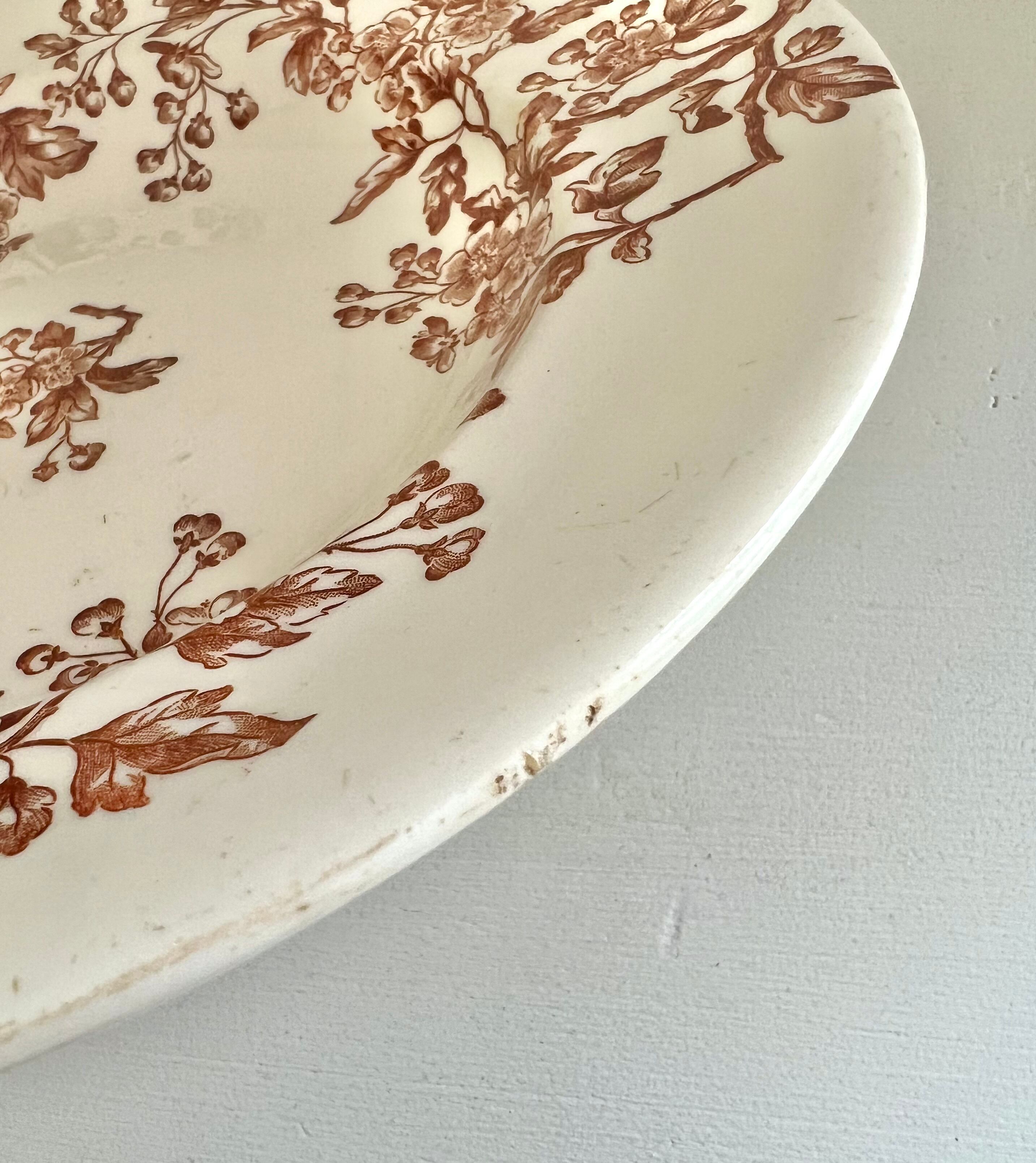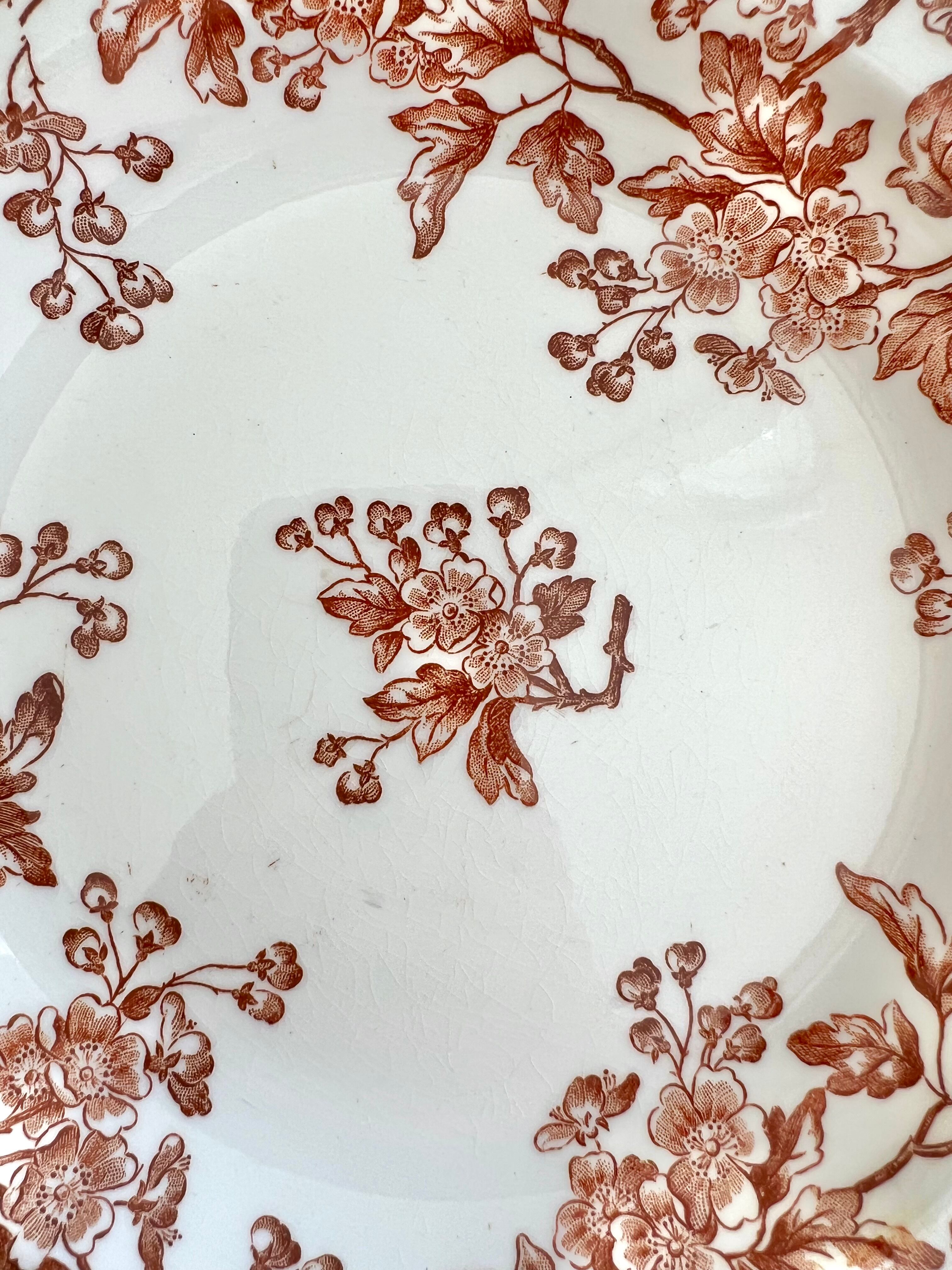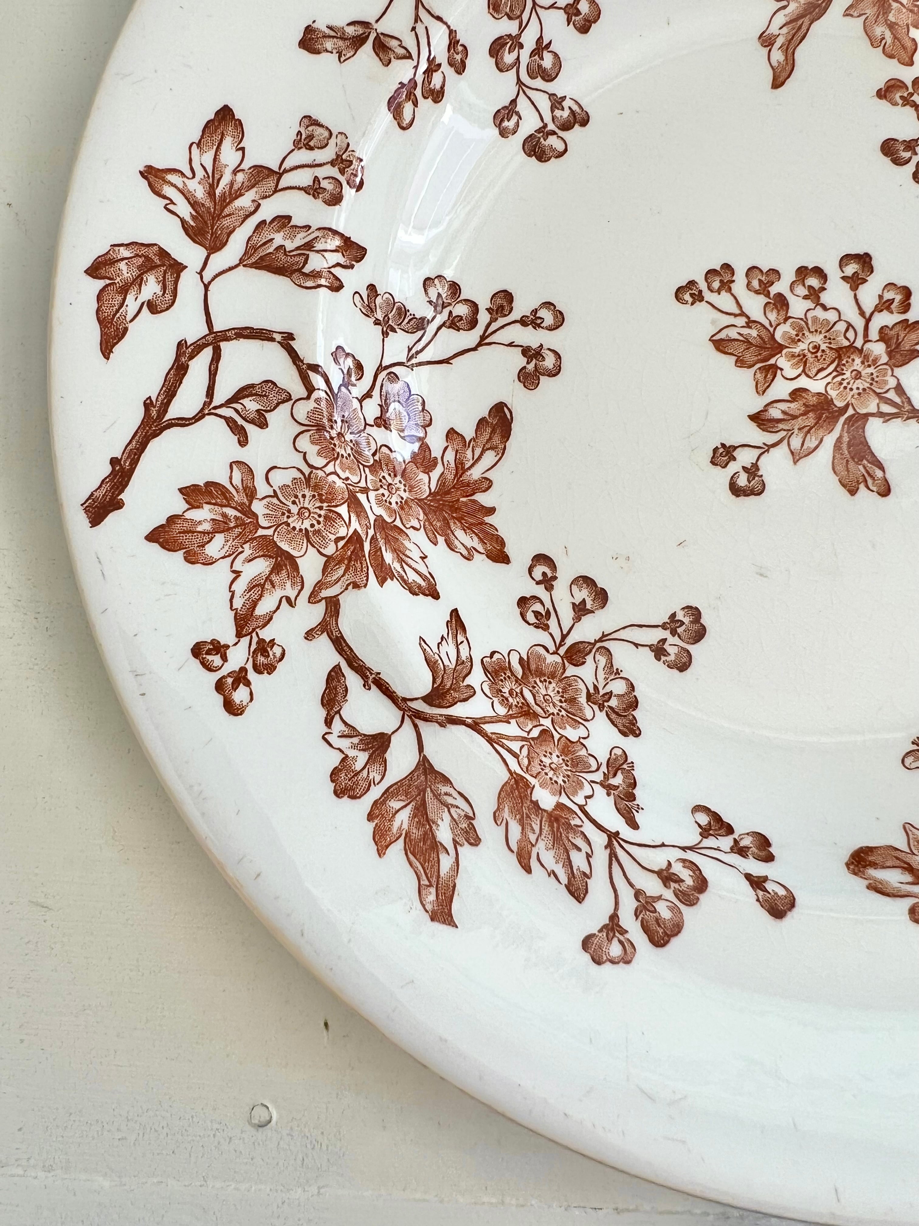 サンザシの花が描かれたオレンジブラウンカラーの素敵なプレートです。