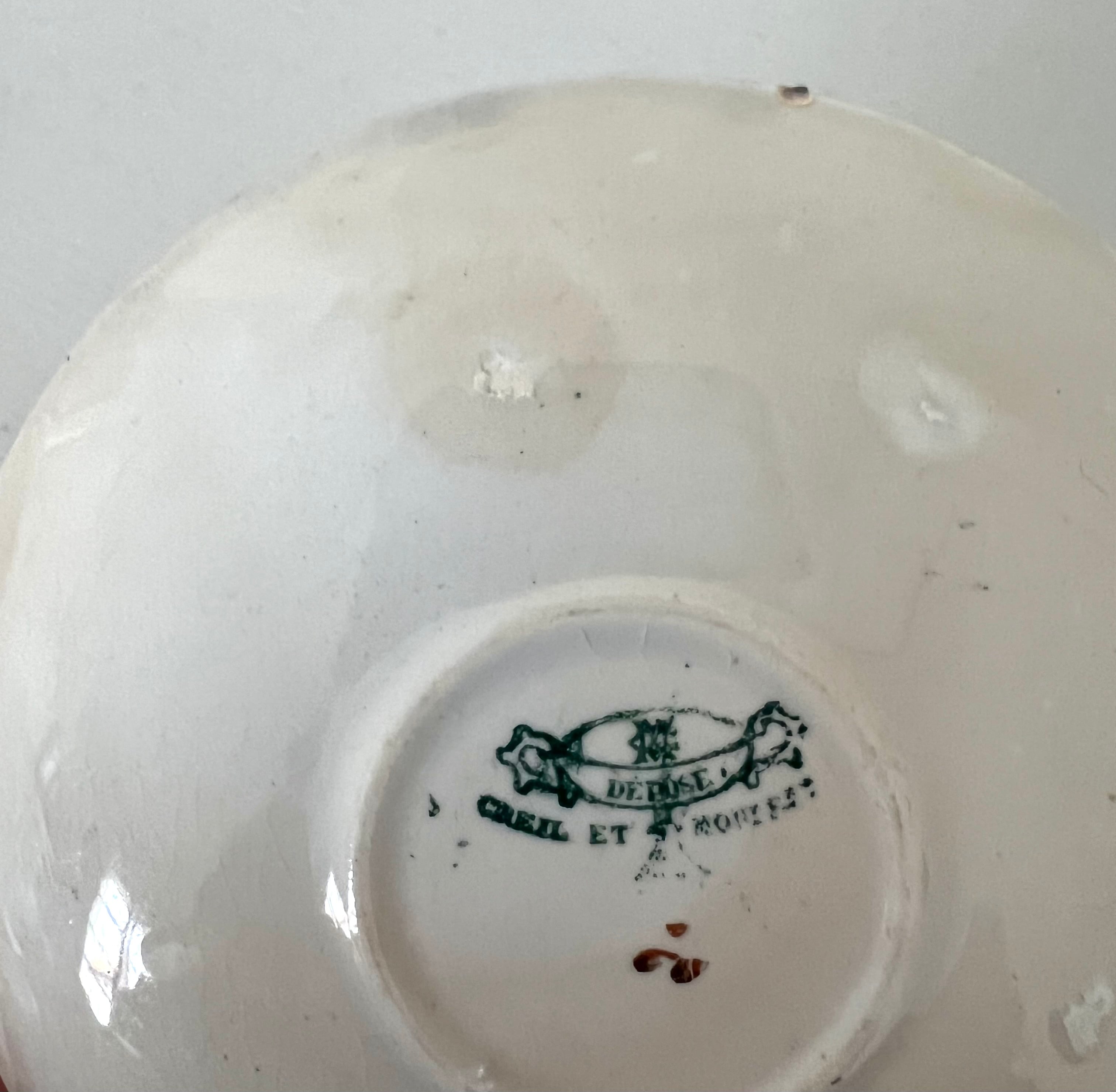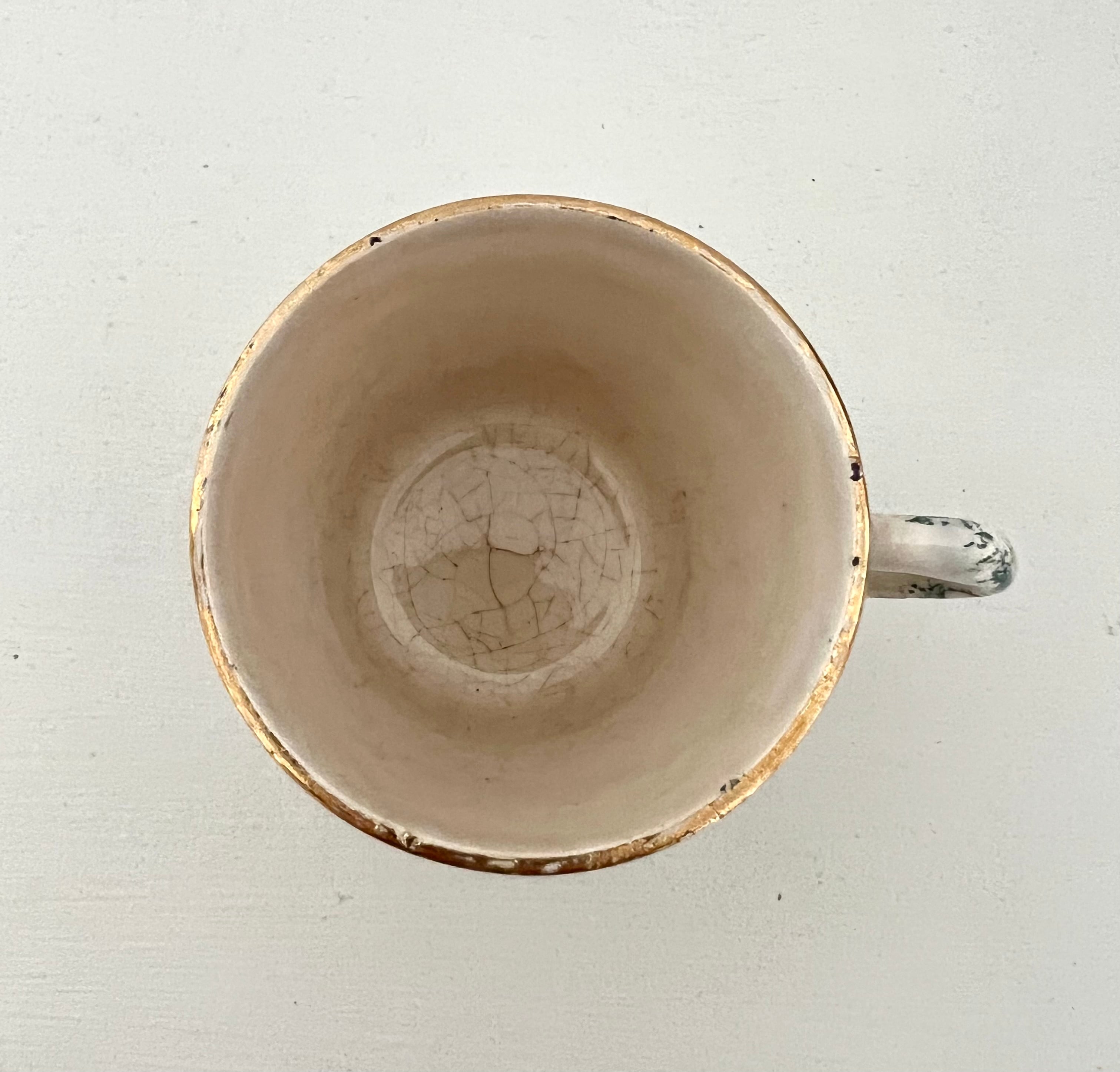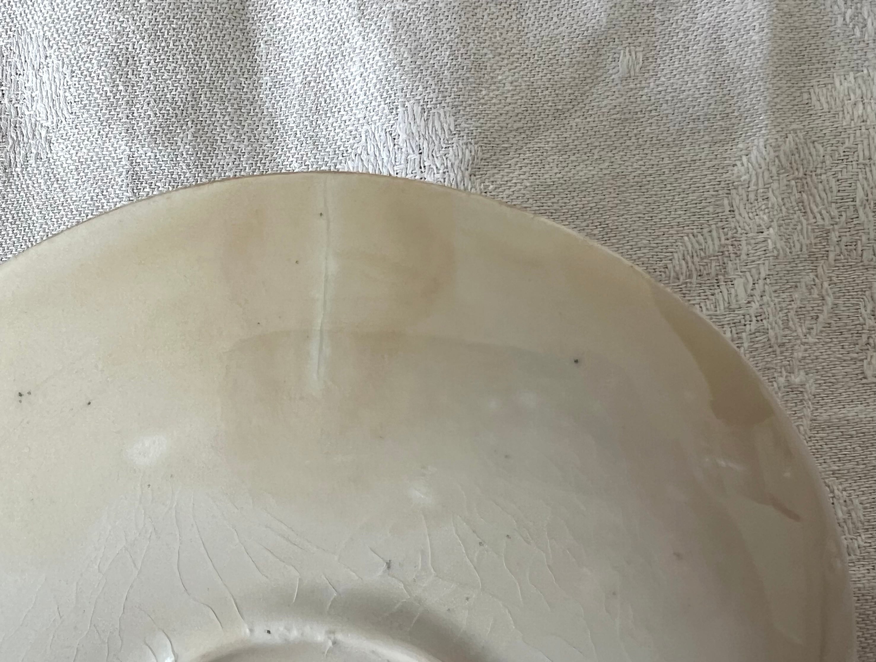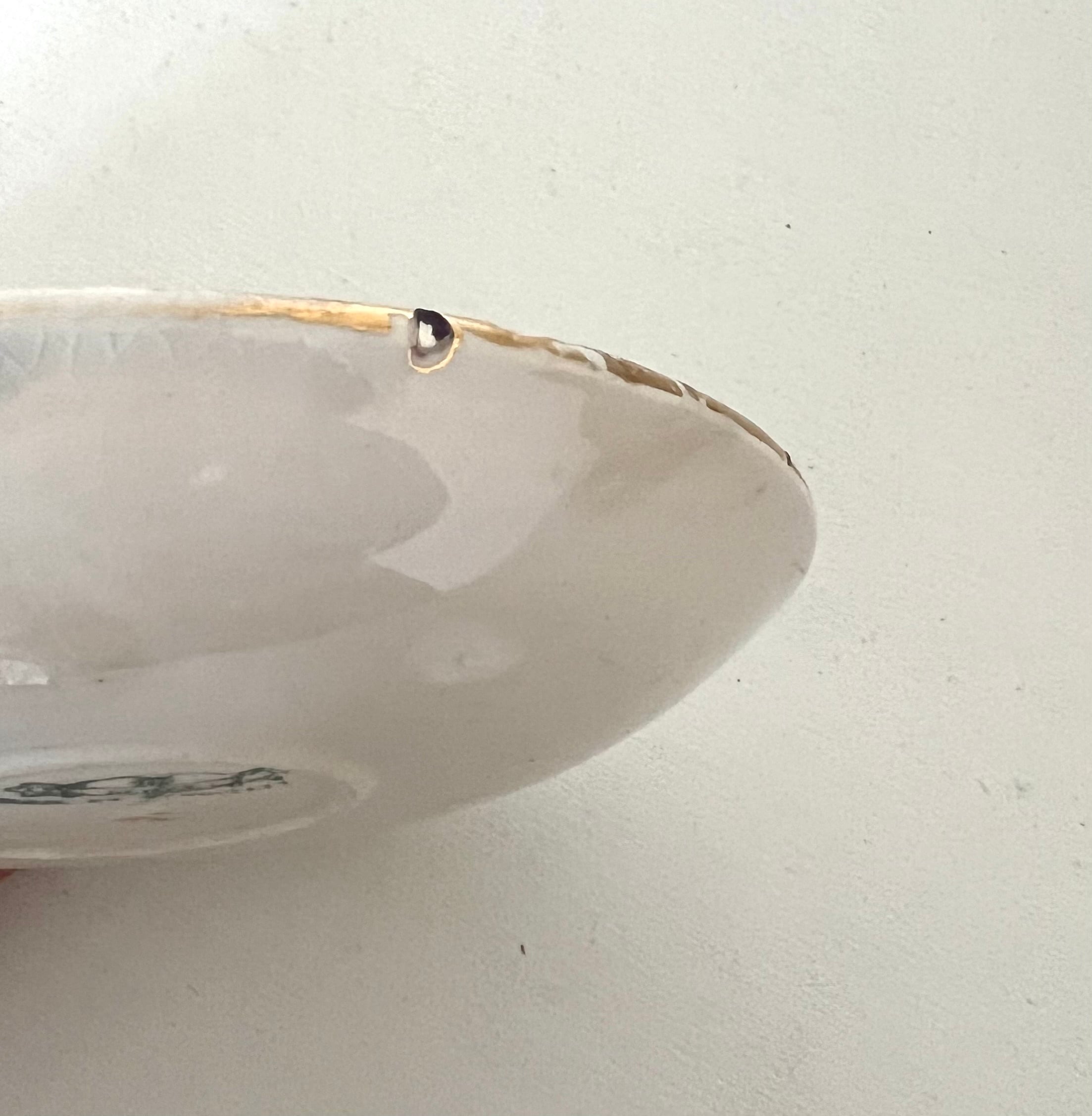 絵柄部分が剥がれている部分に隣接している釉薬が一部脆くなってしまっているので、ソーサーを洗う時などご注意ください。