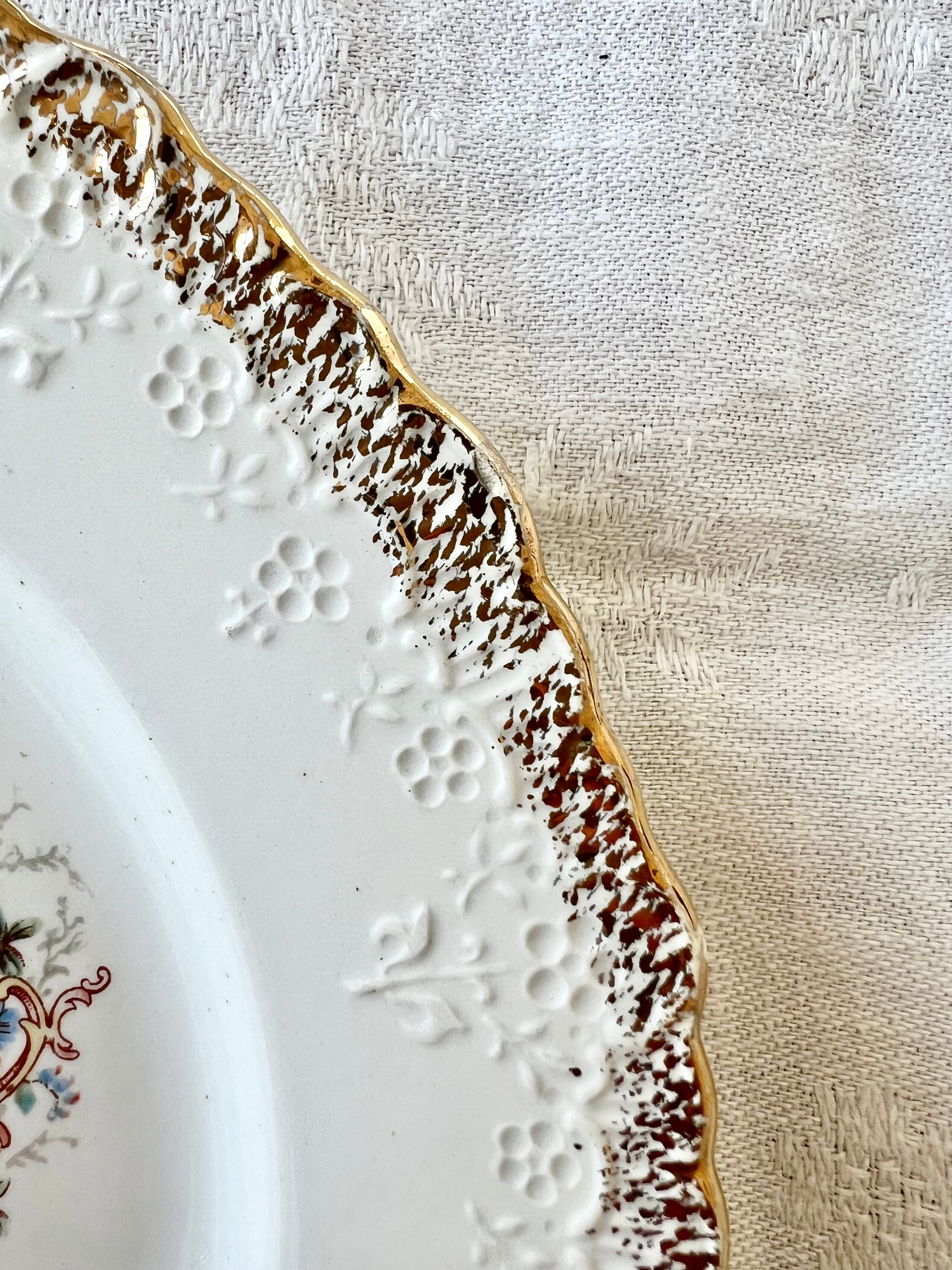 リムにお花のレリーフと金彩が施されています。